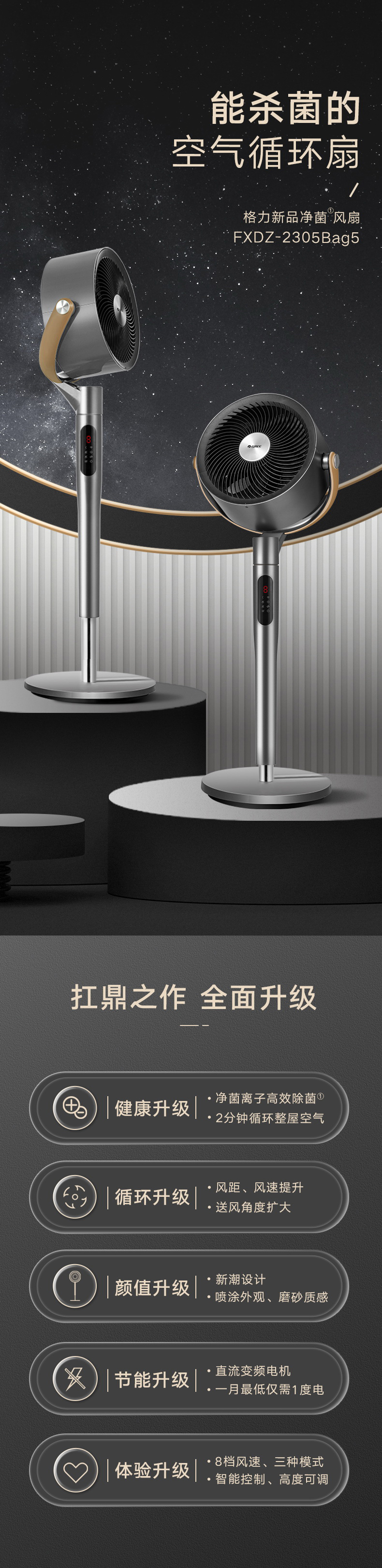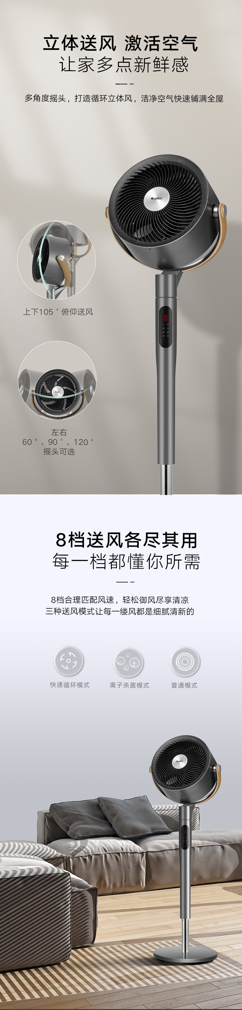 凈菌循環系統,喚醒全屋活力;空調新伴侶,久吹不沉悶;2分鐘循環整屋空氣;直流變頻電機,一月僅需一度電